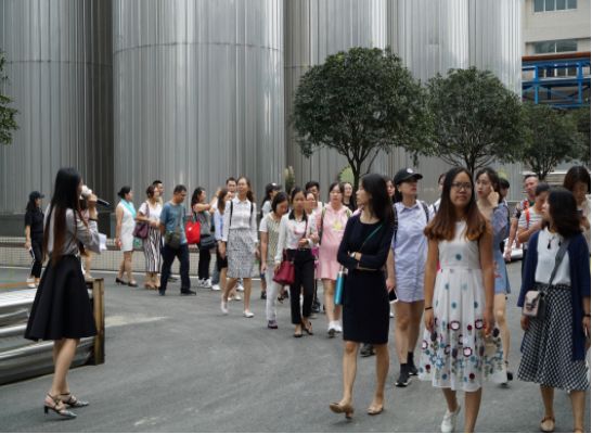 在千禾接待人电子商务媒体策划组曾妍的带领下,给学员热情讲解千禾公司设备,让学员感受千禾的公司建设、品牌文化以及展示未来打造高品质健康调味第一品牌的宏观建设规划蓝图。