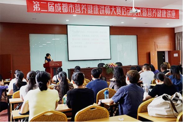 2018年9月8日上午8.50分,由成都市营养中心主持举办的第二届全民营养·健康讲师大赛启动仪式暨我校陈西平博士营养健康讲座,在图书馆报告厅由上届冠军学员邓镁的主持下如期举办。