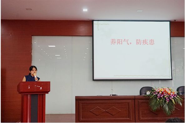 之后我校中国中医药研究促进会分会常务理事,方剂学博士陈西平副教授为大家带来“养阳气、去寒邪、促健康”一场生动的全民营养·营养健康讲座。